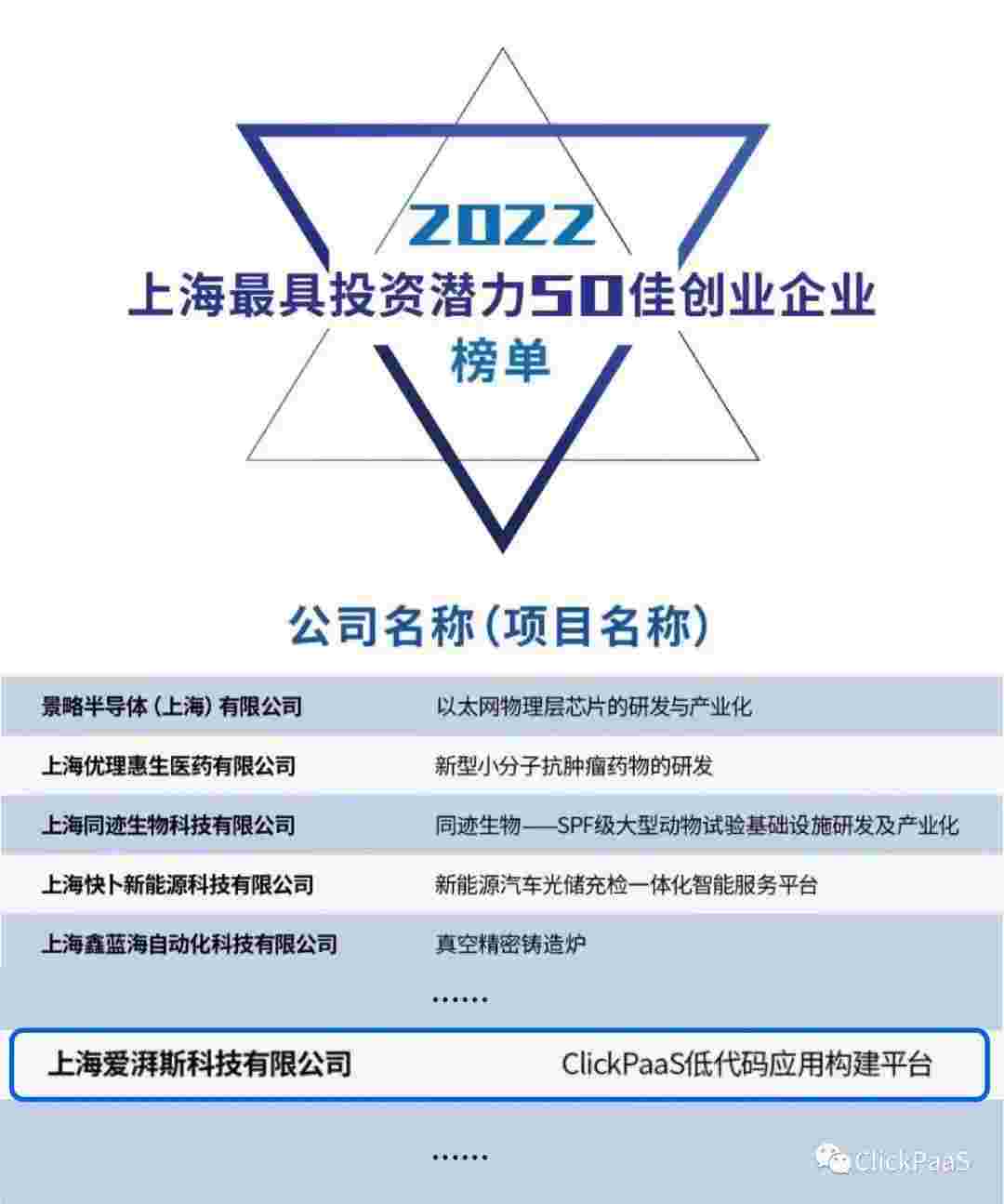 CGPAY钱包 作为国内低代码PaaS平台的领军企业,,,,与120家创企入围角逐。。期间接受了来自德同资本、、领中资本等知名投资机构的10位投资人组成专家评委团的背靠背盲选。。并最终入围“2022上海最具投资潜力50佳创业企业”榜单,,,,被列入“上海市重点培育创业企业库”。。。