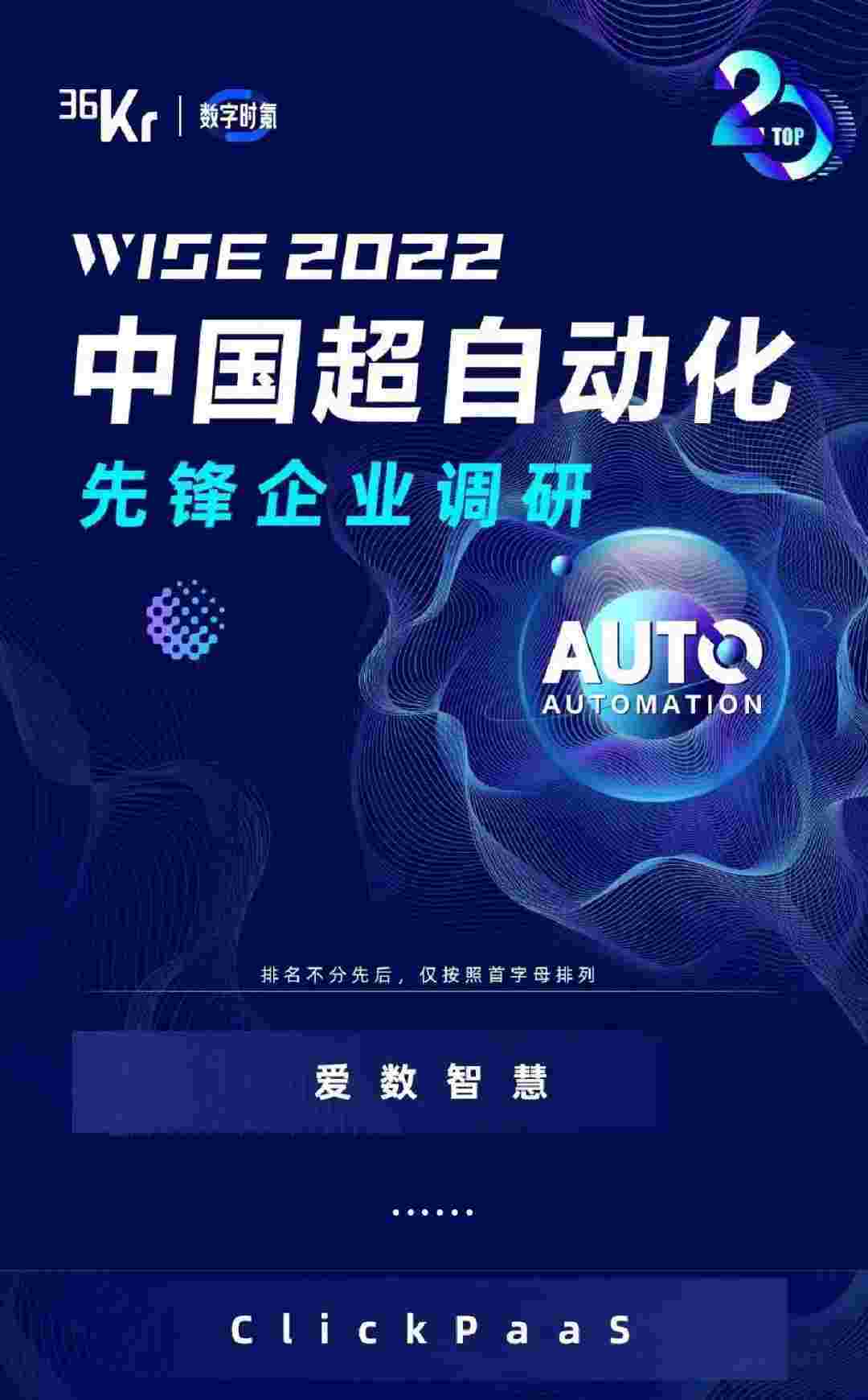8月10日,,由36Kr主办的WISE 2022中国超自动化峰会在杭州成功举办。。CGPAY钱包作为国内低代码PaaS平台的领军企业,,,凭借过硬的技术实力和优质的产品能力,,,在本次峰会中实力入选「2022年中国超自动化先锋企业」20强。。